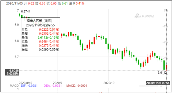 跟A股相關方面,A50大漲2%,離岸人民幣匯率兌美元最低報6.61,為2018年7月以來新高。市場分析,拜登當選的概率比較大。