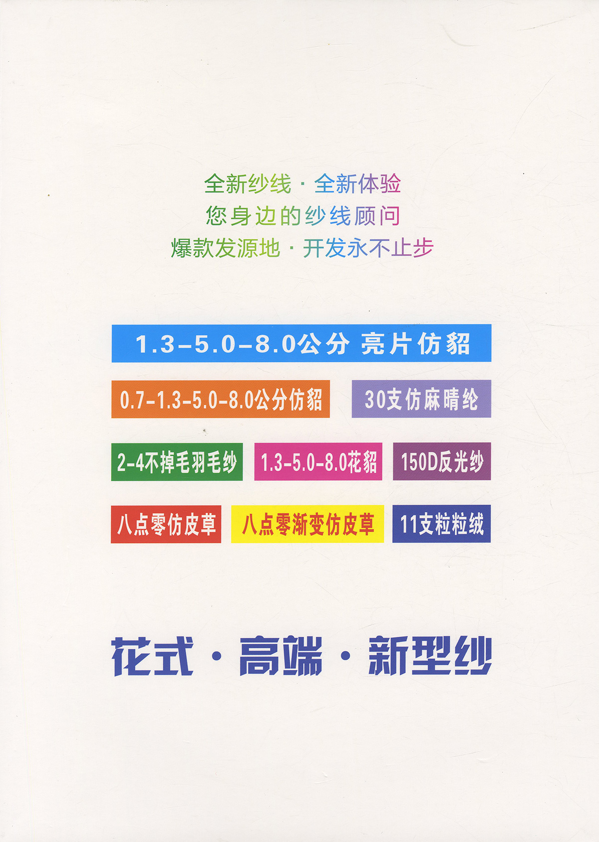 主營:6.8-13支麻爽棉曲 3.5支包纏紗 5支包覆紗 15支棉尼竹節(jié)圈圈 11支粒粒絨 6支中橋紗 5.2支燈籠紗 1.3-8公分仿貂 1.3-8公分銀絲亮片仿貂