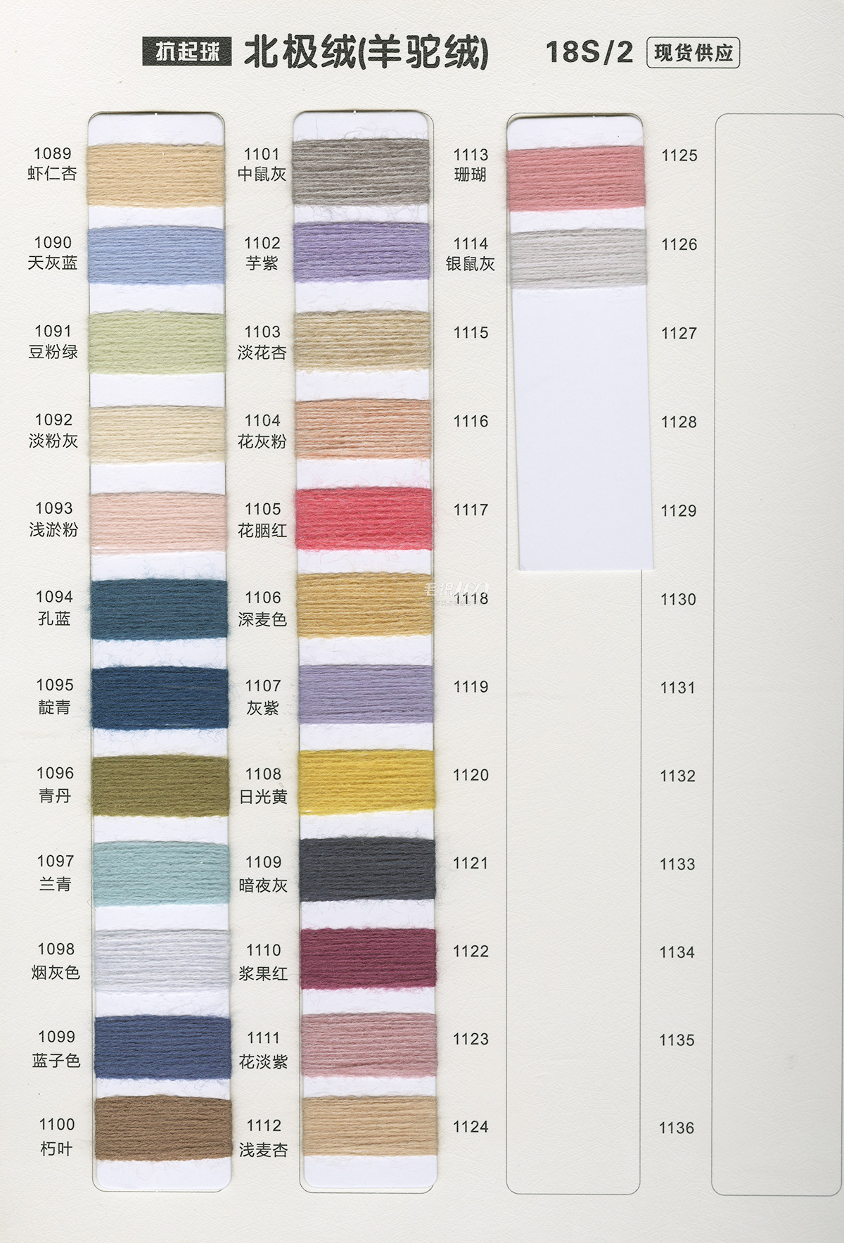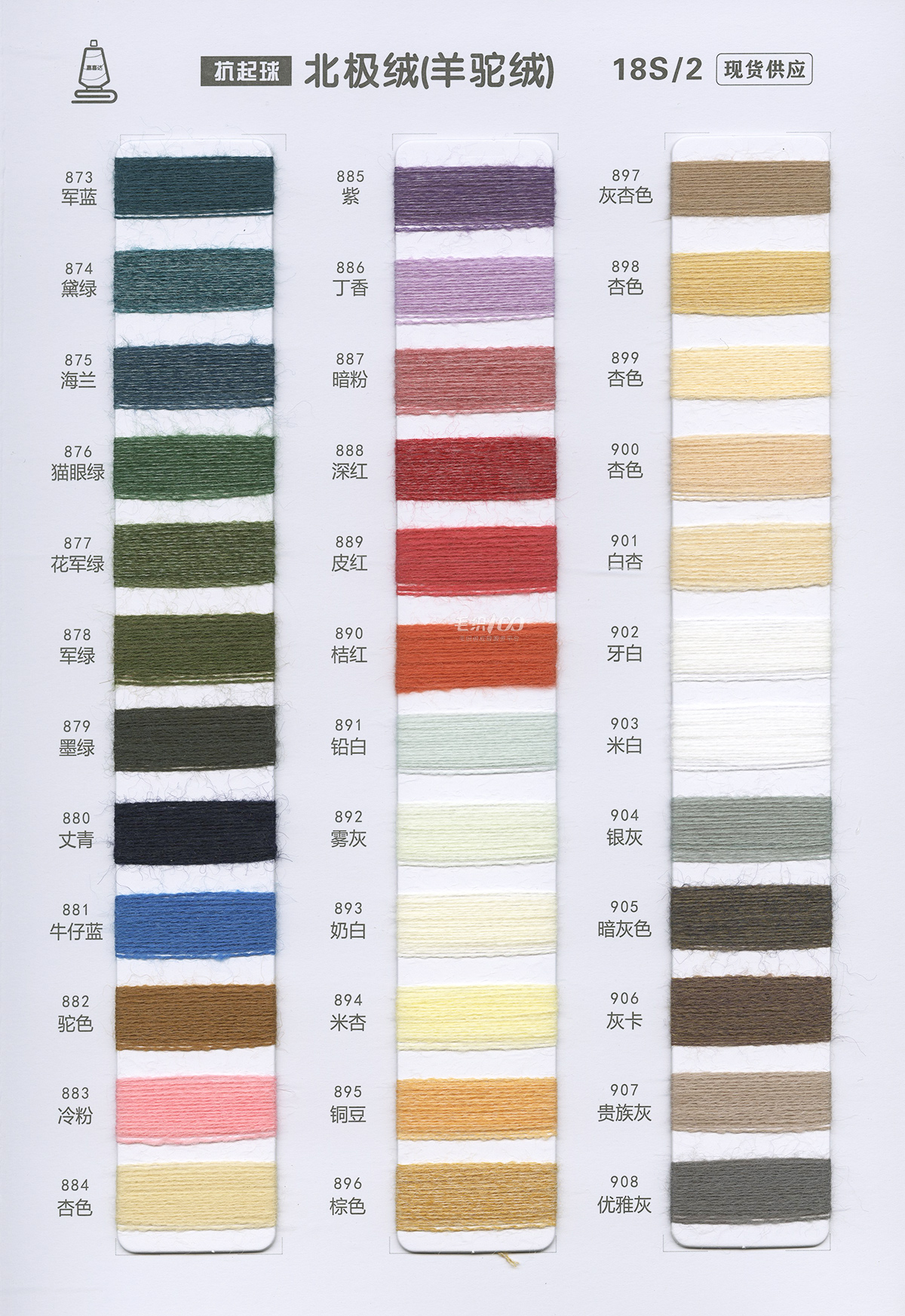 28s/2高彈包芯紗、雙曲(啞光、有光)、18s/2北極絨(羊駝絨)、人造絲、仿麻包芯紗